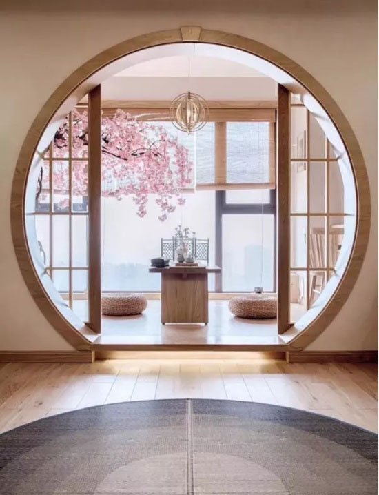【阳台】阳台可以说是很有特色的一个地方,既是书房也是茶室,同时还是瑜伽室,功能性非常强大。一棵樱花装饰树摆放其中,日式韵味十足。